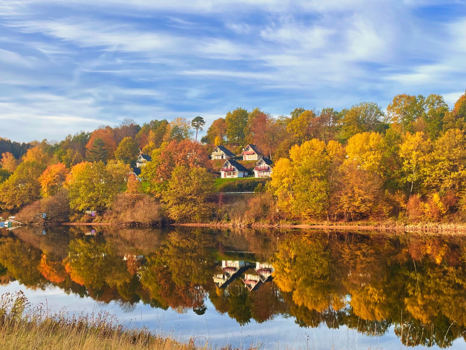 Alle unsere Ferienhäuser liegen nahe beieinander in Dorf 1 und haben dank der Hanglage einen Blick über den See von dem Südbalkon oder der Südterrasse. Was gibt es schöneres als am Morgen auf den Balkon zu treten und direkt auf den See zu blicken? Oder mit deinen Freunden und Familie die private Sauna neben dem Haus Felix oder Helly zu genießen?