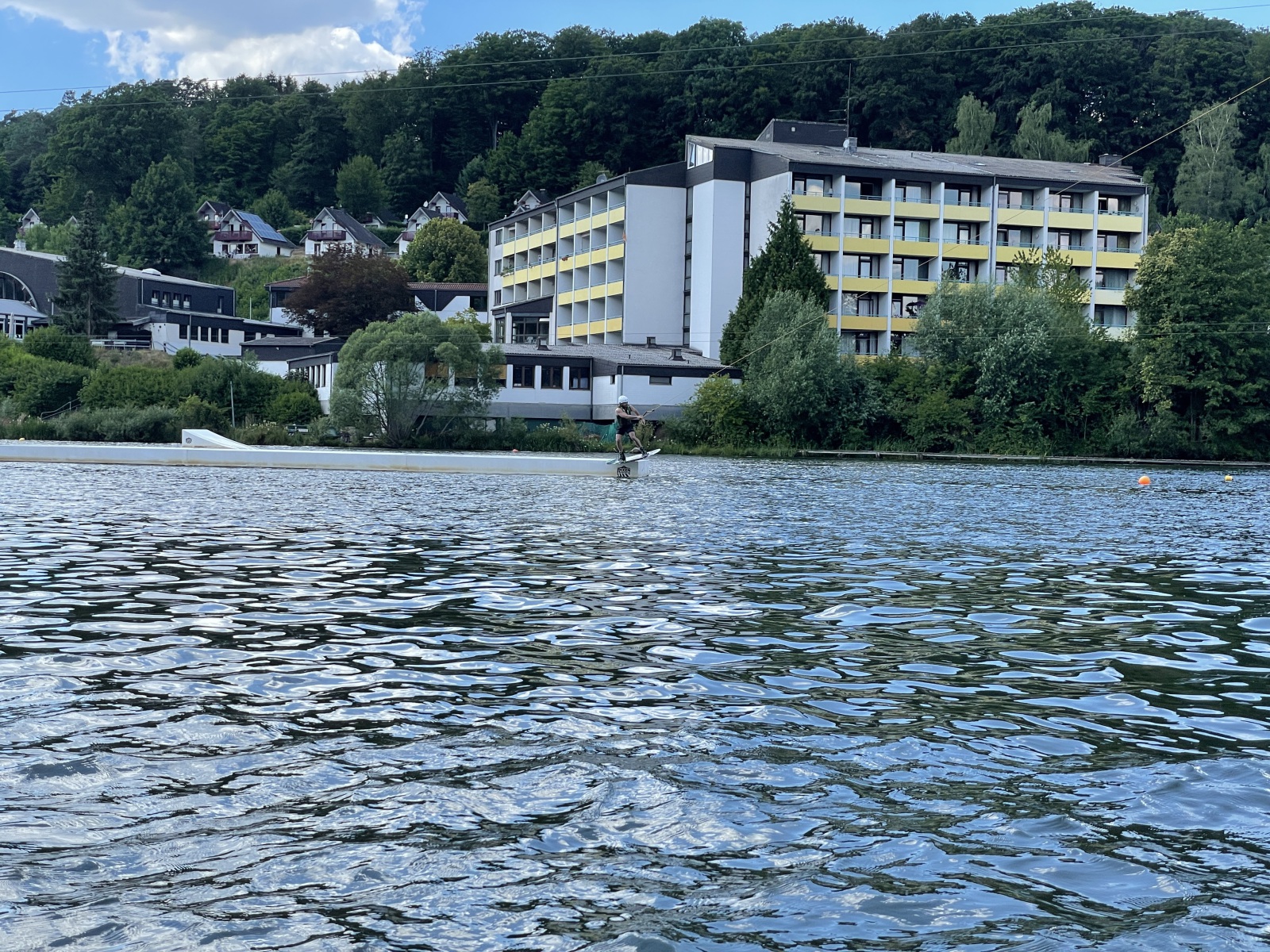 Wenn du Lust auf Wassersport hast, bist du bei uns genau richtig. Unser Stausee, nur 200m entfernt, bietet nicht nur Angelstellen und Bademöglichkeiten, sondern auch die Möglichkeit zum Wakeboard und Wasserski fahren. Für diejenigen, die lieber auf dem Trockenen bleiben, gibt es eine Trampolinanlage, einen Spazierweg um den See, sowie einen Tretbootverleih.